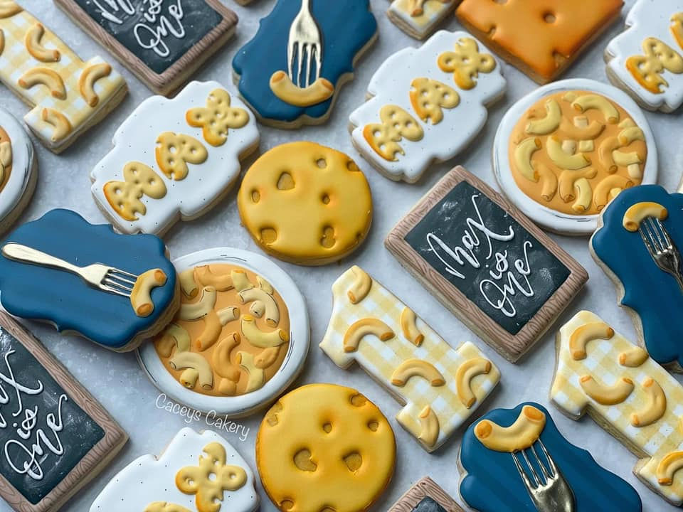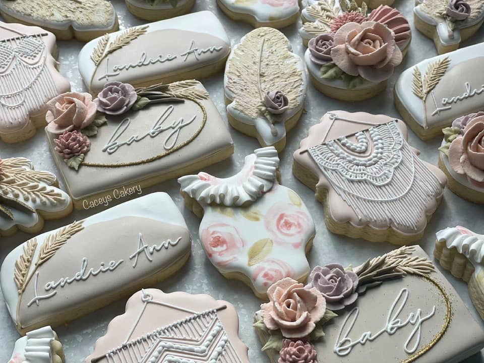 Pricing is dependent on design, theme, and level of detail. The best way to get an accurate quote is to contact me with order details (invites, color scheme, decor, or any other useful information.) Pricing starts at $84 a dozen and I have a 2 dozen minimum for custom orders (except for the gift box set option.) Please see below for examples of cookies in each price range.